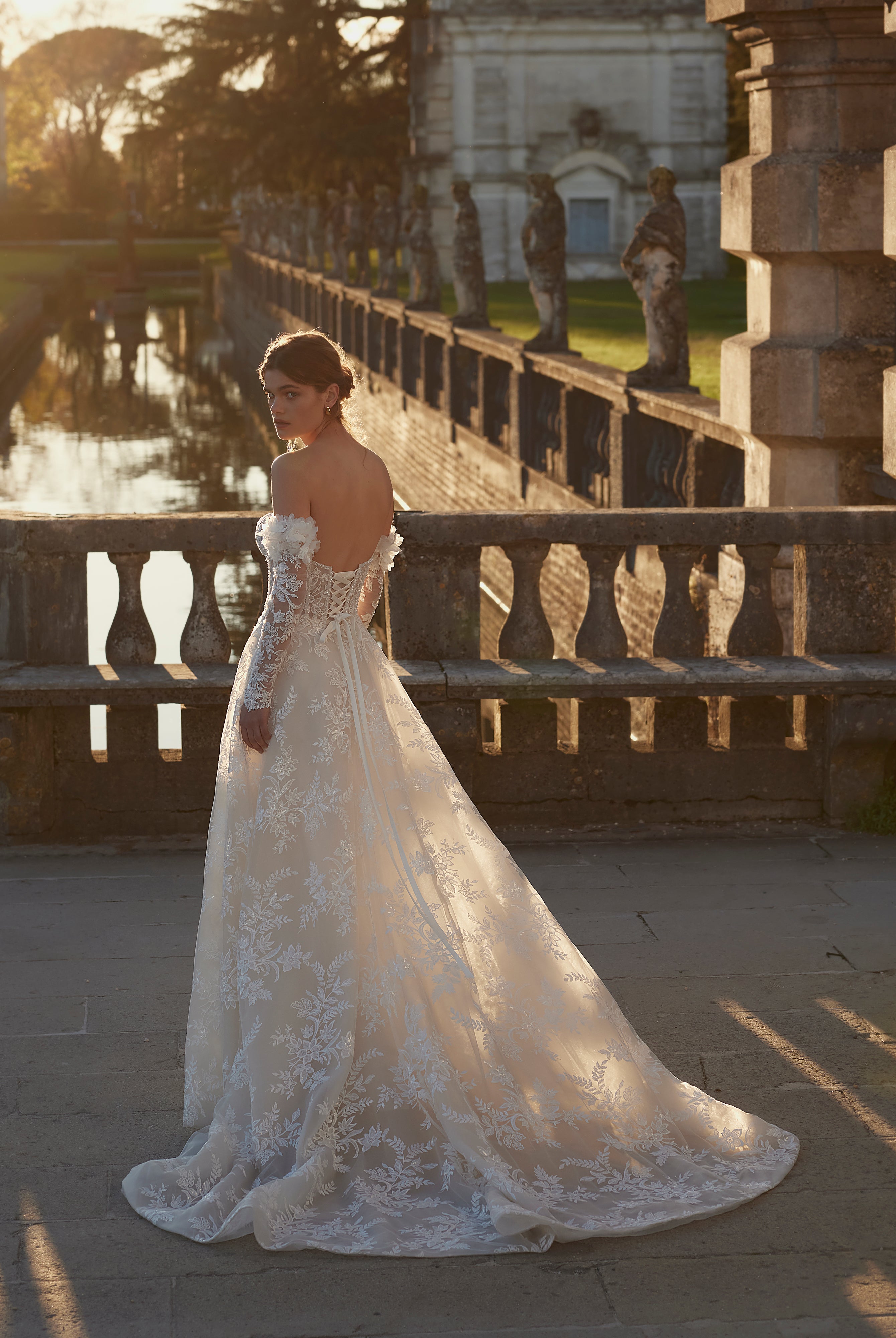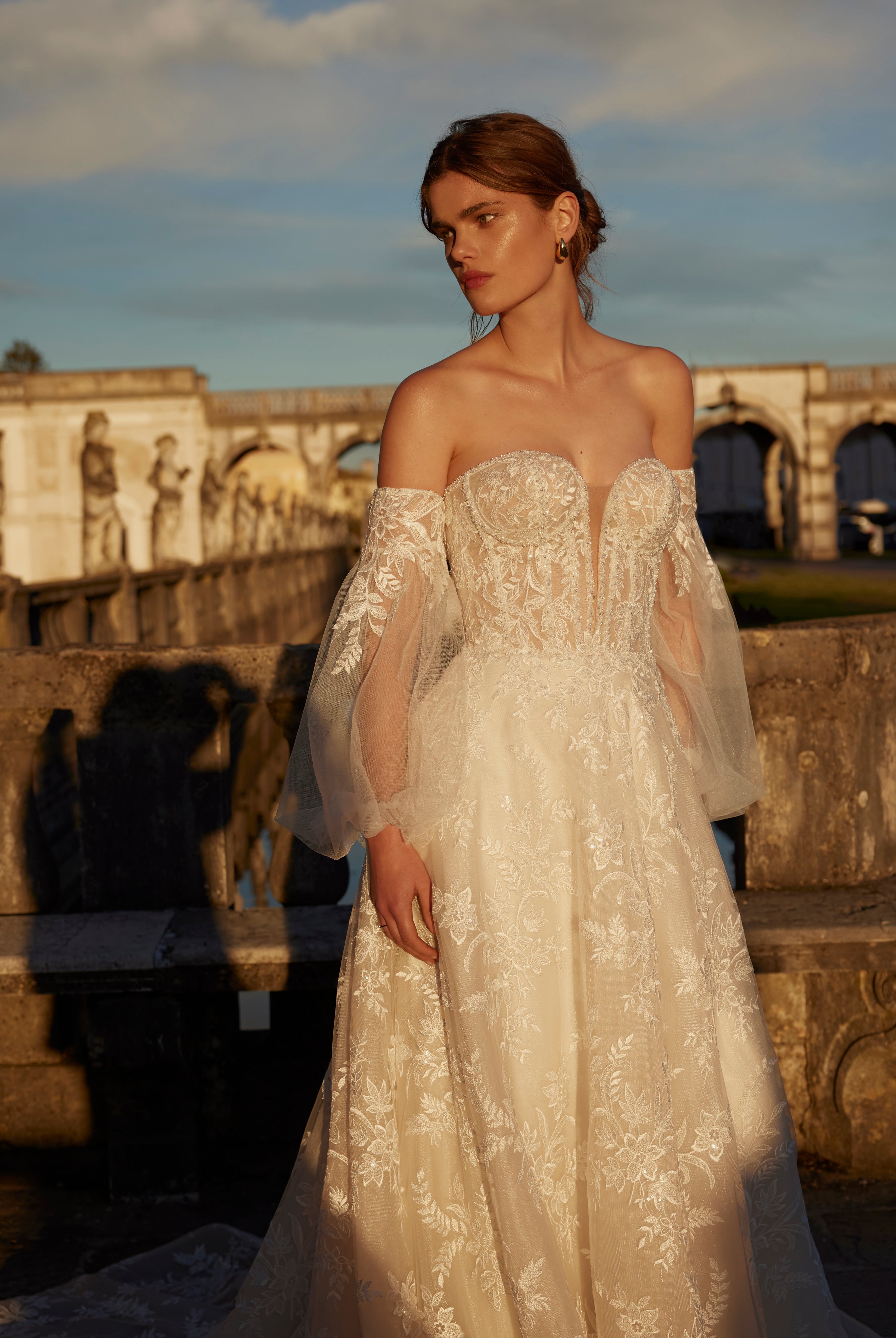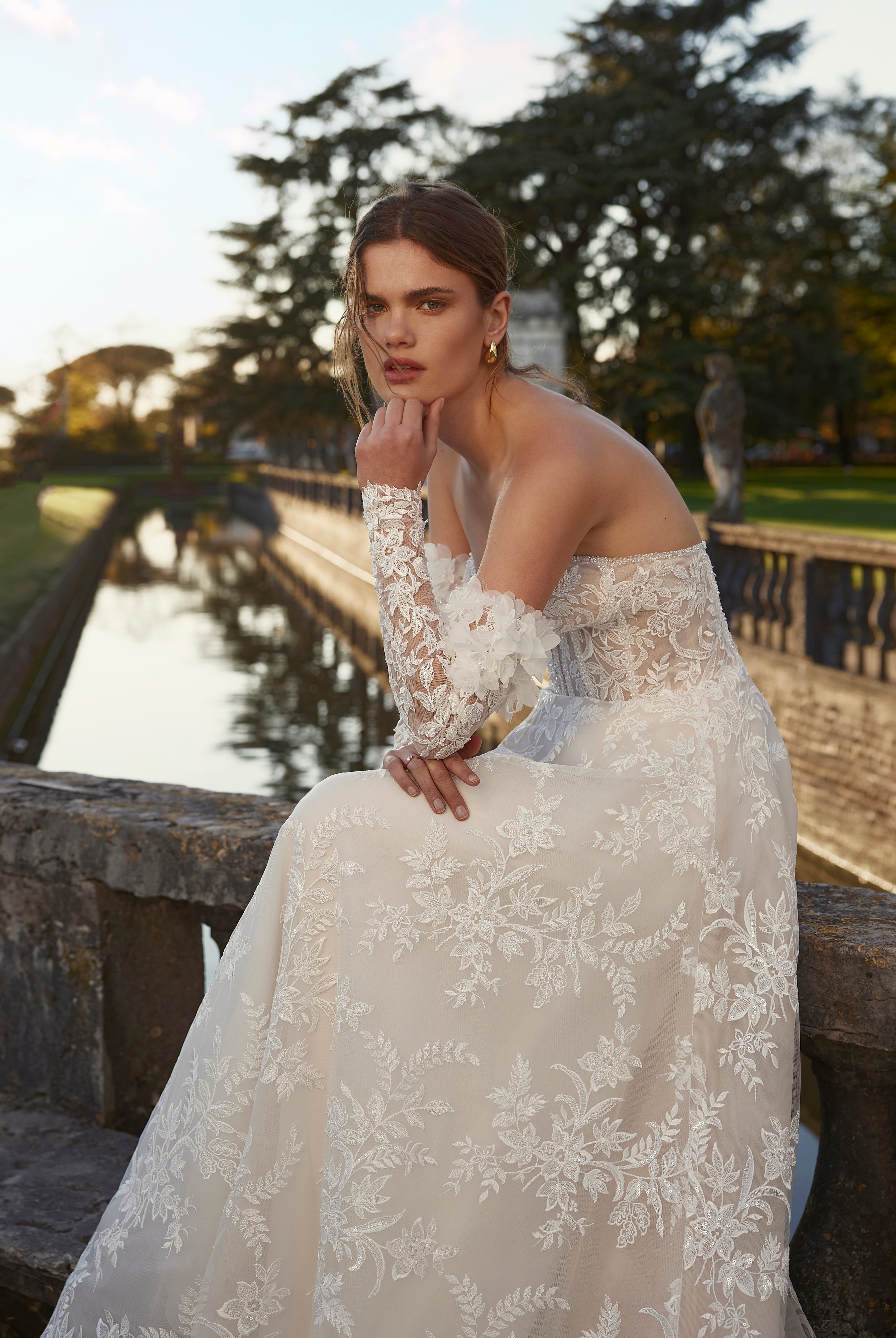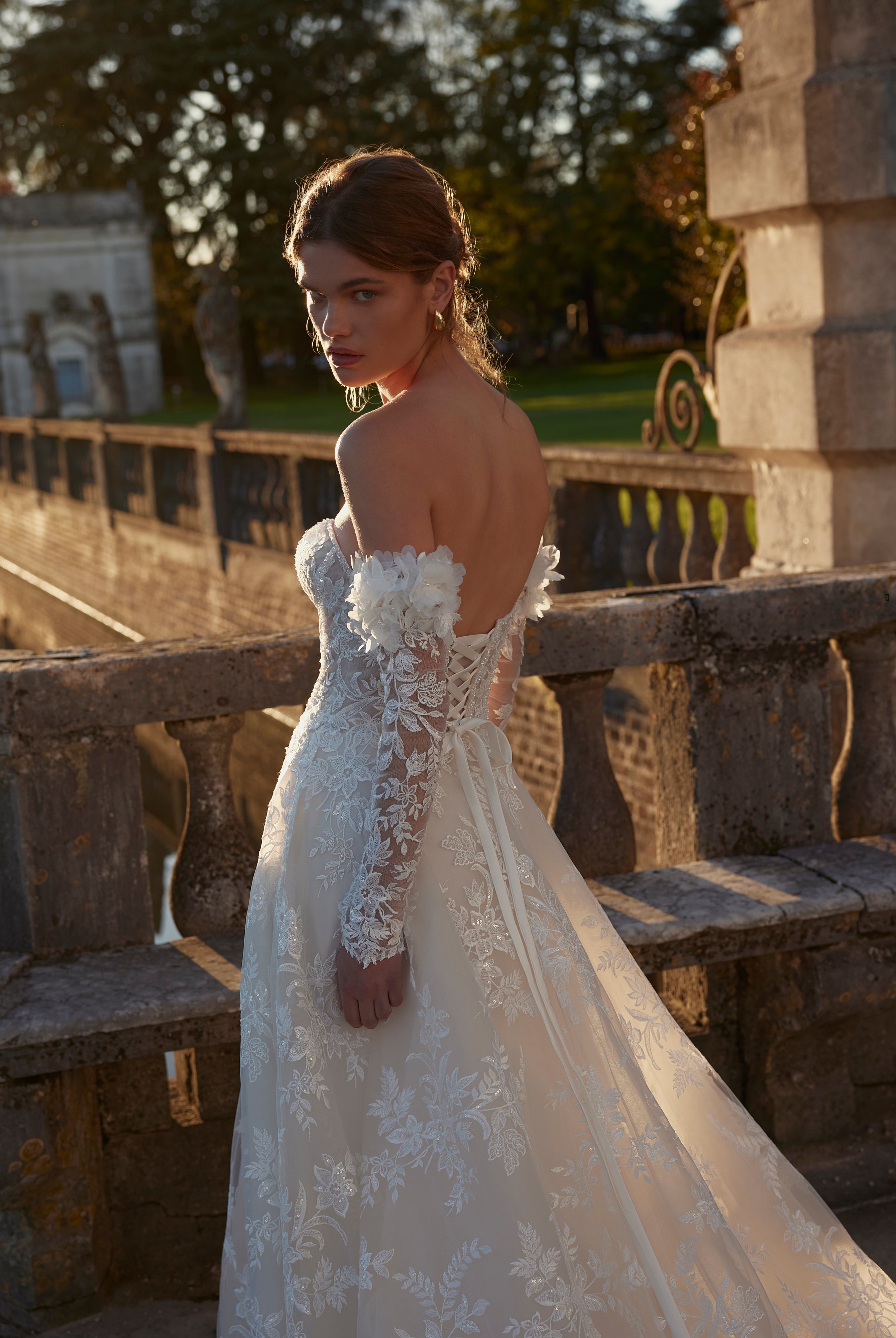 Robe avec des manches longues délicates et un corsage en dentelle, offrant une allure romantique et intemporelle.